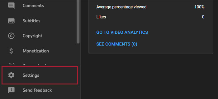 ۱. وارد یوتیوب استودیو شوید و از سمت چپ، Settings را انتخاب کنید.
